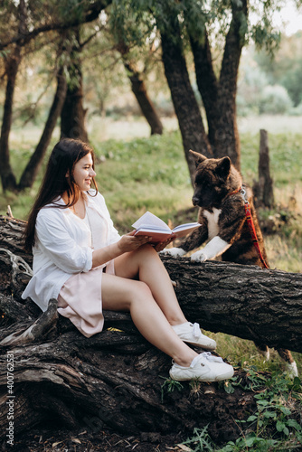 © omelnickiy, Obraz premium young girl in white clothes sits on a tree in the forest