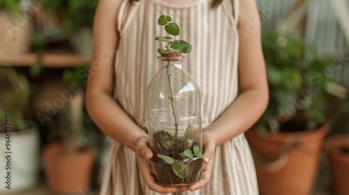 Obraz premium Young Girl Learning About Recycling and Ecology in Classroom Morning Lesson...
