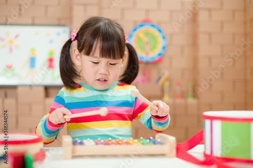 Fototapeta premium young girl play xylophone at home for homeschooling