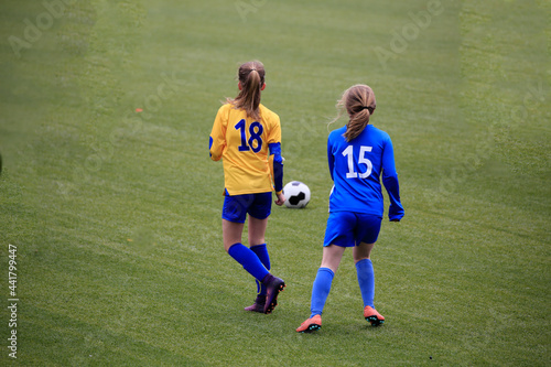 © Gunnar E Nilsen, Obraz premium Young girl playing football,,Norway,scandinavia,Europe