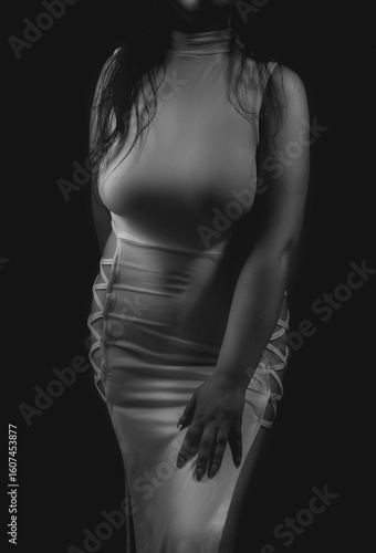 © Artvibe, Naklejka premium young girl posing in dress over camera