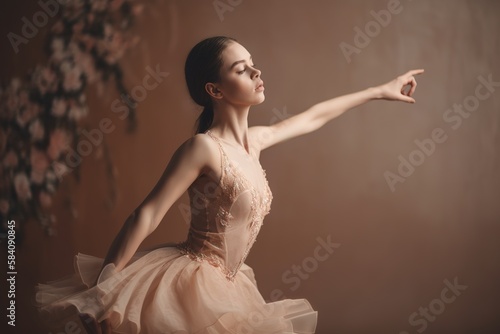 © Pajaros Volando, Fototapeta premium Young girl professional ballerina dancer. Generative AI