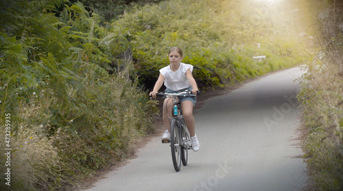 © goodluz, Fototapeta premium young girl riding a bicycle in summer
