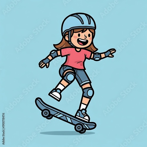 Obraz premium Young Girl Skateboarding with Safety Gear.