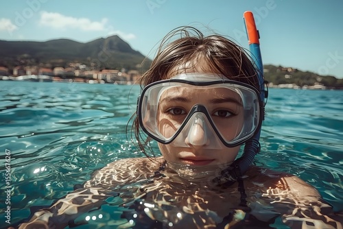 © Paull, Fototapeta premium young girl with diving sea mask on holiday diving