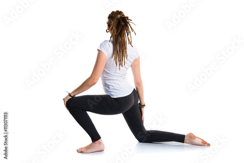 Fototapeta premium Young girl with dreadlocks doing yoga