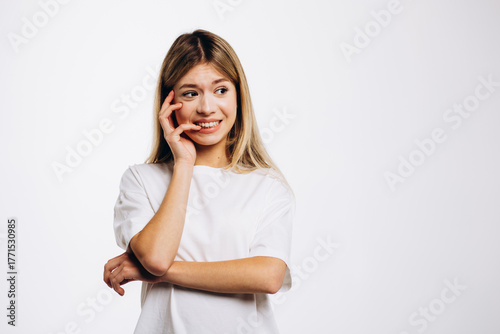© Petro, Fototapeta premium Young girl with emotions and gestures isolated on white background