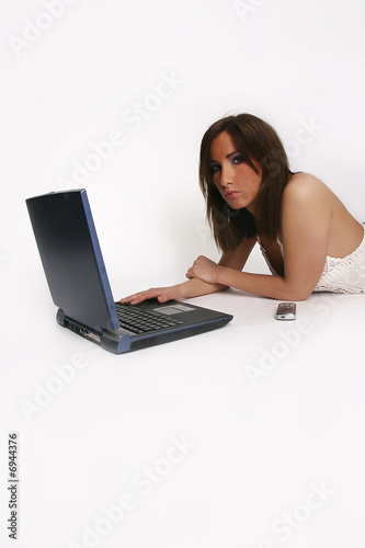 © aleksandar kamasi, Naklejka premium young girl with laptop computer and cellphone