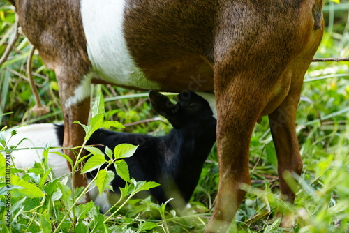 © Soaps, Fototapeta premium young goat feeding with his mother in uganda africa