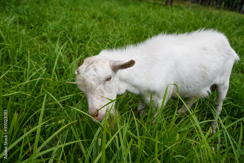 © Bells7, Obraz premium young goat in the meadow eating grass