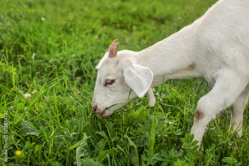 © Lubo Ivanko, Obraz premium Young goat kid grazing on the grass.