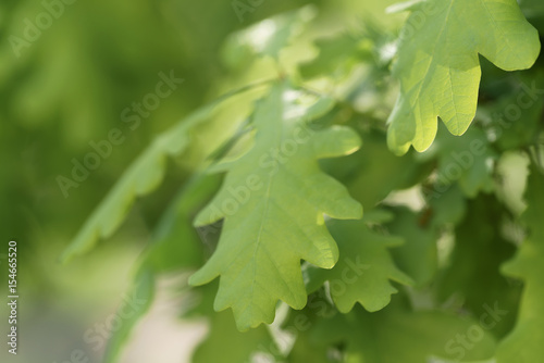 © GCapture, Fototapeta premium Young green oak tree leaves in spring day