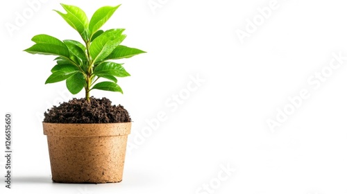 © Stocker, Obraz premium Young Green Plant in a Pot Isolated on White Background. Generative AI
