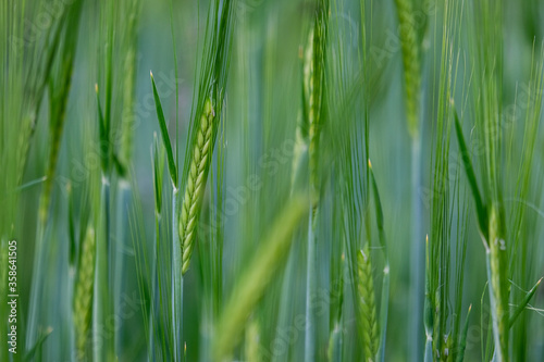 © martina, Naklejka premium young green rye in a field macro. Secale Cereale