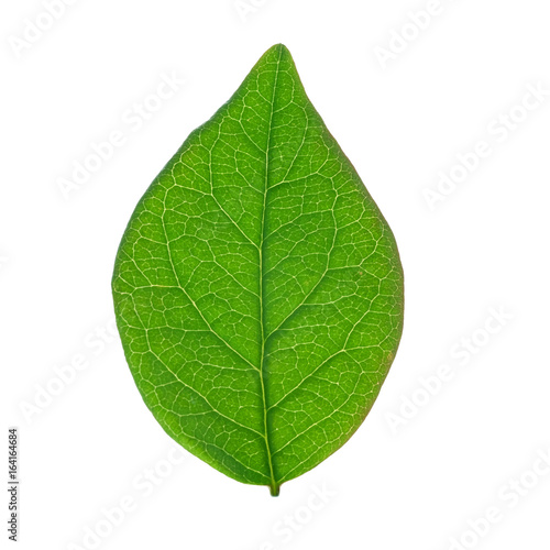 Fototapeta premium Young green tree leaf closeup isolated on white background.