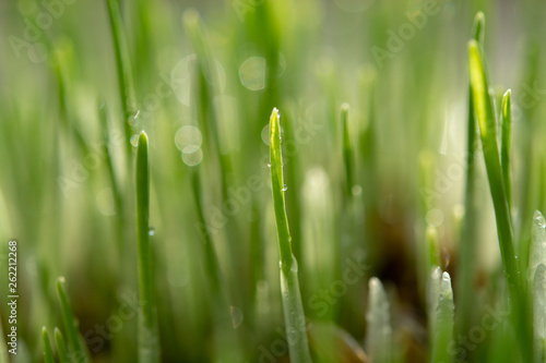 © barmalini, Obraz premium Young growing sprouts of cat grass, Dactylis glomerata, close up