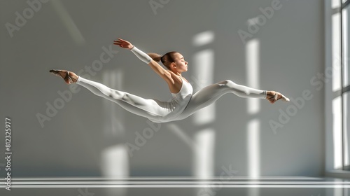 Naklejka premium Young Gymnast Executing Dramatic Acrobatic Routine in Minimalist Studio Setting