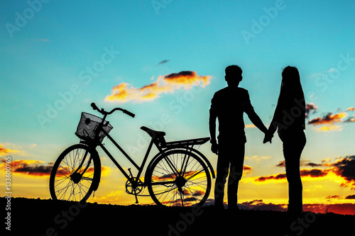 © RK1919, Obraz premium Young handshake at silhouettes.