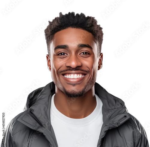© Watcharakorn, Obraz premium Young handsome african man happy face smiling isolated on white transparent background