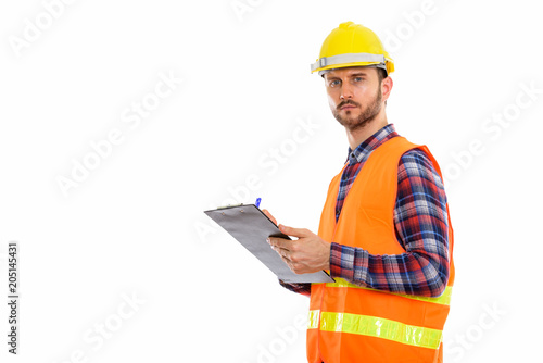 © Ranta Images, Fototapeta premium Young handsome bearded man construction worker