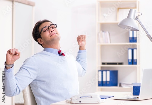 Obraz premium Young handsome businessman employee working in office at desk