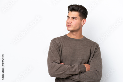 Fototapeta premium Young handsome caucasian man isolated on white bakcground looking to the side