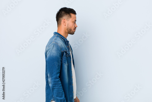 Fototapeta premium Young handsome filipino man gazing left, sideways pose.