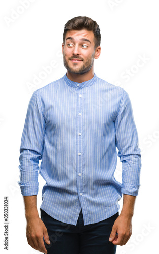 © Krakenimages.com, Fototapeta premium Young handsome man over isolated background smiling looking side and staring away thinking.
