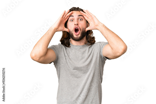 Naklejka premium Young handsome man over isolated chroma key background with surprise expression