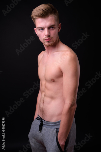 Fototapeta premium Young handsome man shirtless against black background