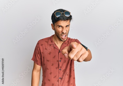© Krakenimages.com, Fototapeta premium Young handsome man wearing casual summer clothes pointing displeased and frustrated to the camera, angry and furious with you