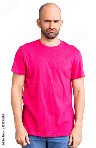 Fototapeta premium Young handsome man wearing casual t shirt depressed and worry for distress,...