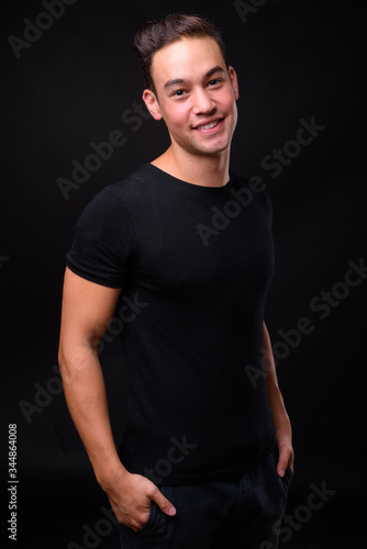 © Ranta Images, Fototapeta premium Young handsome multi ethnic man against black background