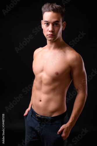 © Ranta Images, Fototapeta premium Young handsome multi ethnic man shirtless against black background