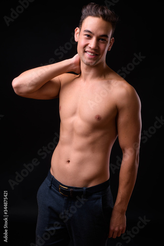 © Ranta Images, Fototapeta premium Young handsome multi ethnic man shirtless against black background