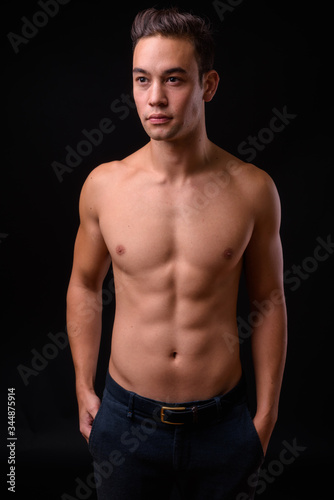 © Ranta Images, Fototapeta premium Young handsome multi ethnic man shirtless against black background