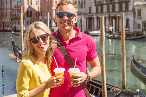 © Kaspars Grinvalds, Fototapeta premium Young happy couple enjoying Venice