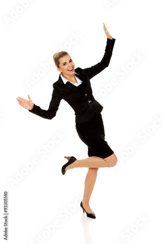© Piotr Marcinski, Fototapeta premium Young happy jumping businesswoman