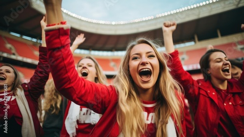 Fototapeta premium Young happy women friends enjoying a sporting event