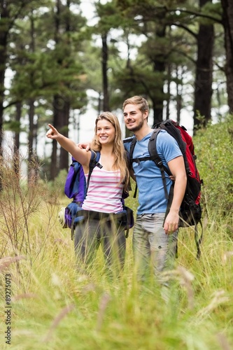 © WavebreakMediaMicro, Fototapeta premium Young hiker couple pointing