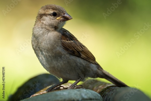 © Milan, Fototapeta premium Young house sparrow stands on a stone. Portrait. Czechia.