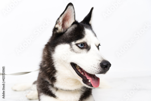 Obraz premium Young husky dog over white background
