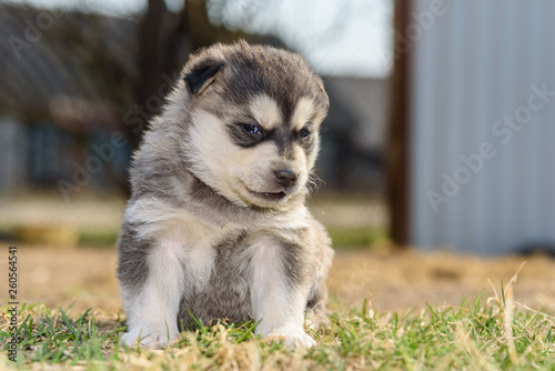 © shymar27, Fototapeta premium Young husky puppy playing on the grass.