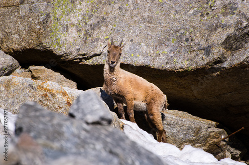 Naklejka premium Young Ibex on the stone in Gran Paradiso national park fauna wildlife, Italy...