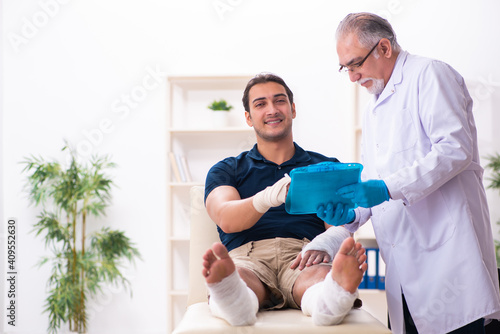 © Elnur, Obraz premium Young injured man visiting old doctor traumatologist