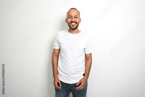 © Louis-Paul Photo, Fototapeta premium young islamic arab man against white studio wall