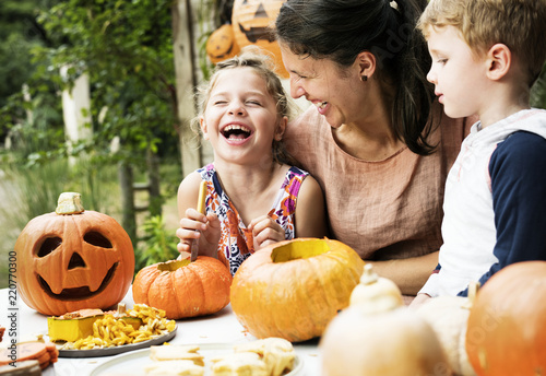 © Rawpixel.com, Obraz premium Young kids carving Halloween jack-o'-lanterns