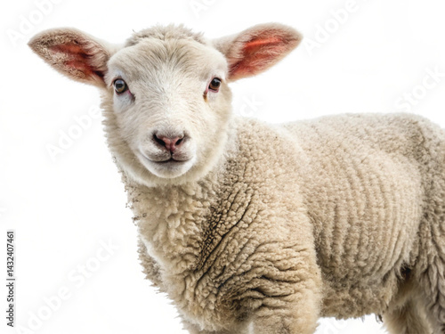 © Nusrat, Fototapeta premium Young Lamb Isolated on White Background – High-Resolution Farm Animal Image
