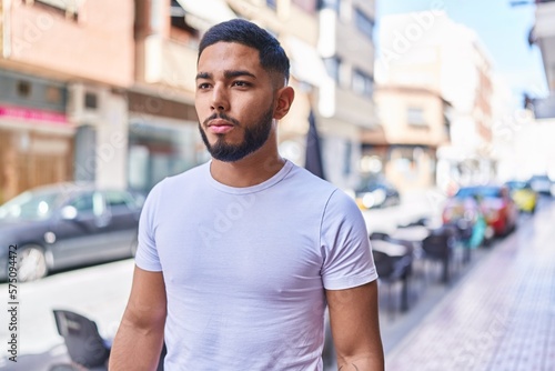 © Krakenimages.com, Fototapeta premium Young latin man looking to the side with serious expression at street