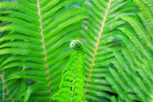 © Gavial, Fototapeta premium Young leaf fern. Close-up. On the background of green.